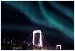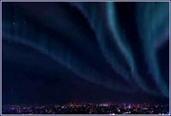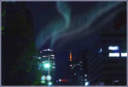 (東京の日常生活に突如として現れたオーロラ・・)